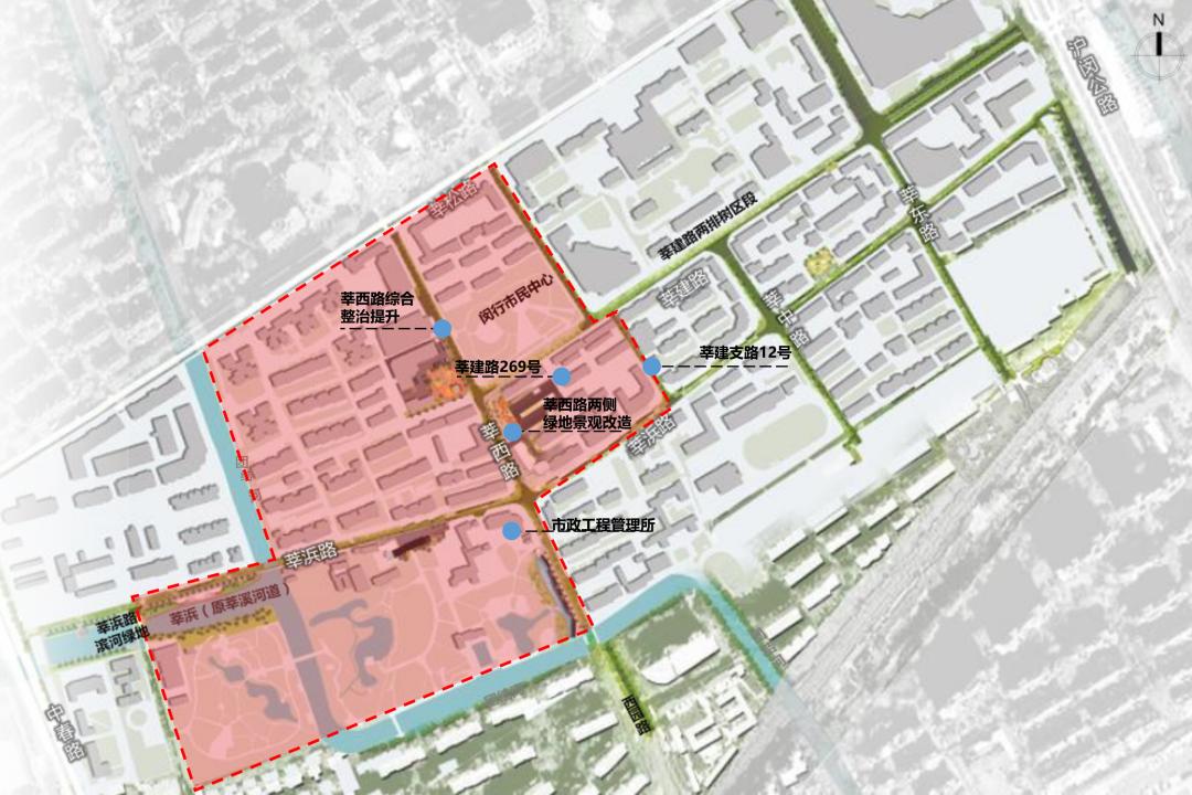位于闵行市民文化广场南侧、莘西路东侧的“莘建路269号区域”是一排老旧沿街多层建筑,今年也将进行翻新。新设计风格现代简约,营造开放式街区,提升片区配套服务能级。