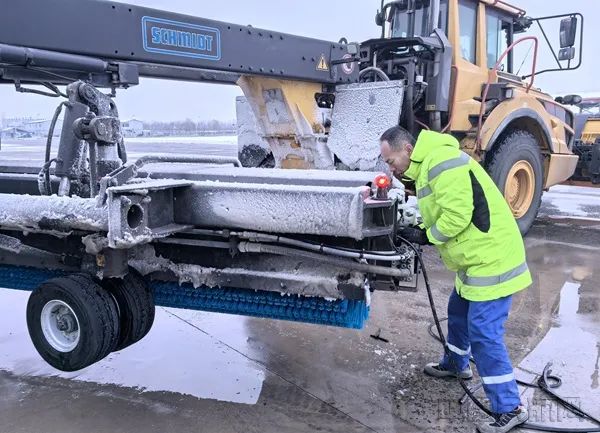 “见雪即动”,降雪开始后,呼和浩特机场公共区管理部“以雪为令”,第一时间投入组织机械人员开展破冰除雪保障作业,投入大、中、小不同类型扫雪车应对宽窄各异的场区路段。小型扫雪机凭借其小巧灵活的优势,穿梭在停车场出入口和人行道等较为狭窄的路段。中型扫雪车肩负着高架桥路段的清雪重任,它的滚刷宽度适中,在桥上桥下有序循环清雪,为过往车辆开辟“放心路”。大型扫雪车作为今年新增的“有生力量”,一经投入便成为进出场路、空港大道等外场主要道路清雪的主力军,它的车身庞大、动力强劲,沿着主要道路不间断地循环清雪,所到之处积雪纷纷“让路”。(中国民航报 通讯员李冀)