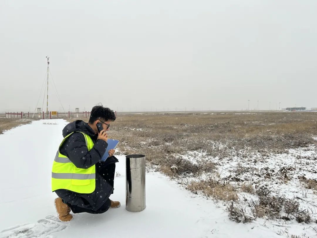 本次呼和浩特小到中雪天气最低能见度达到700米,积雪深度2.3厘米。内蒙古空管分局启动复杂天气应急预案,各部门紧密联动,形成高效协同的保障网络。