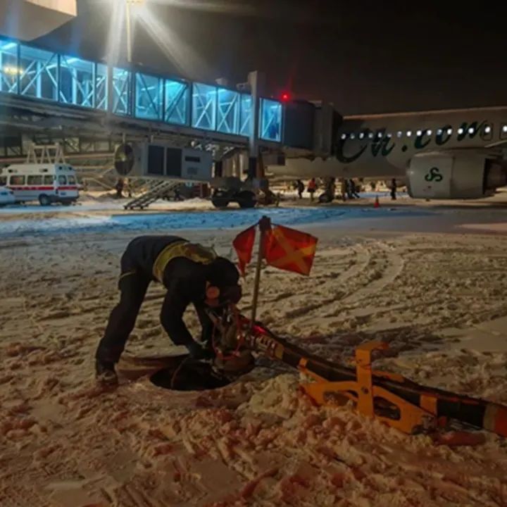 航空器除冰是保障冰雪天气下航班运行安全的重要步骤。为确保每一架飞机安全起飞,济南机场机务人员采用慢车除冰与定点除冰相结合的模式,配合开展航空器预除冰工作,并充分发挥新建除冰液加注站作用,持续提高航空器除冰雪效率,全力为旅客平安出行保驾护航。