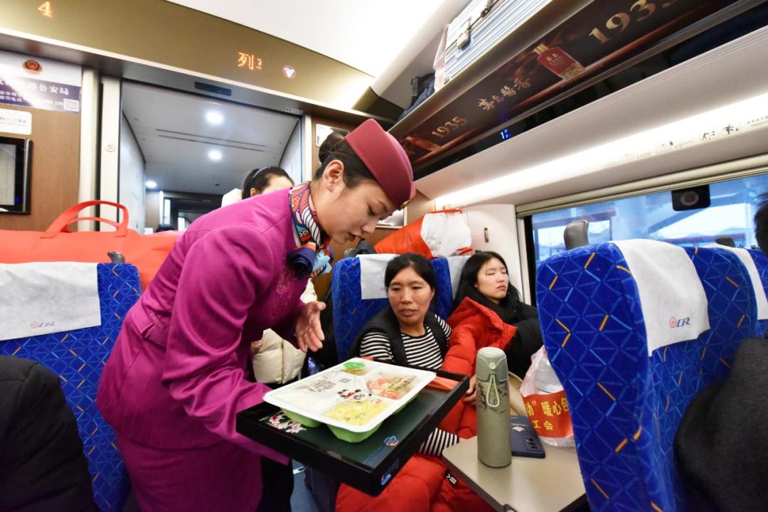 客运服务越做越细,列车上的“一碗好饭”也备受旅客青睐。成都局集团公司不断提升长途车餐饮质量,特别是丰富动车冷链盒饭和“小碗菜”菜品种类。据统计,去年春运,成都局日均销售冷热链餐食2万余份。
