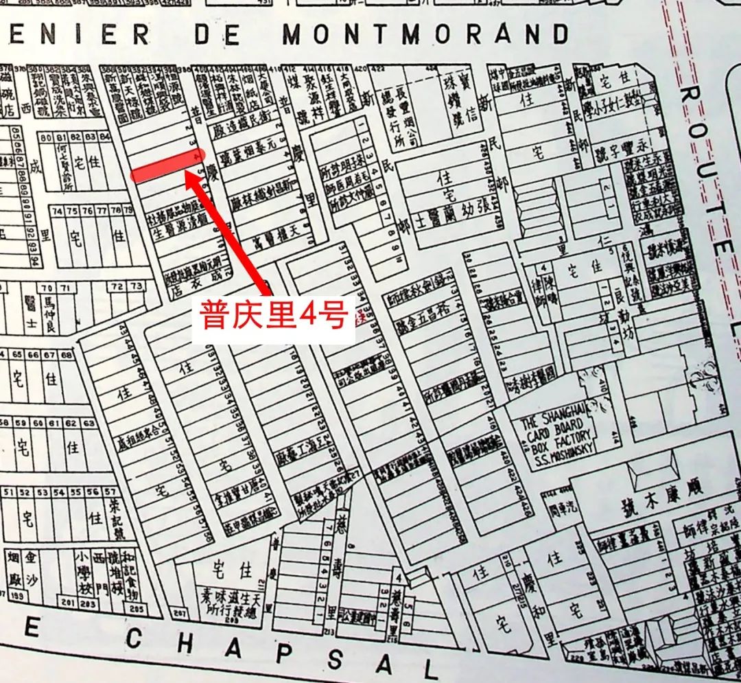 普庆里位于原上海法租界核心区域,是一处典型的三层石库门里弄住宅,主弄口正对马当路(原名白来尼蒙马浪路)。据上海市城市建设档案馆馆藏档案可知,普庆里多为单开间石库门住宅。进门为天井,底层为客堂、厨房,二楼、三楼为卧室。普庆里的建造方于1925年1月提交建造申请。另据《申报》上的招租广告,至迟于该年12月,这片住宅已经建成。据此,今年正是普庆里的“百年华诞”。