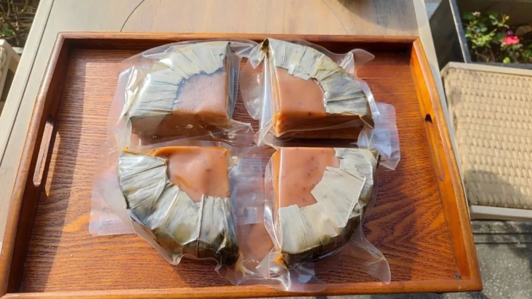 结合现代人的口味和需求,吴国俊在选用五花肉的基础上,还加入百合、桂圆、红枣等食材,不断创新口味。同时,他还利用真空包装等保鲜技术,将糖糕销往全国各地,让更多人品尝到这份来自青田的甜蜜滋味,“一年下来,能卖出12.5吨糖糕呢。”