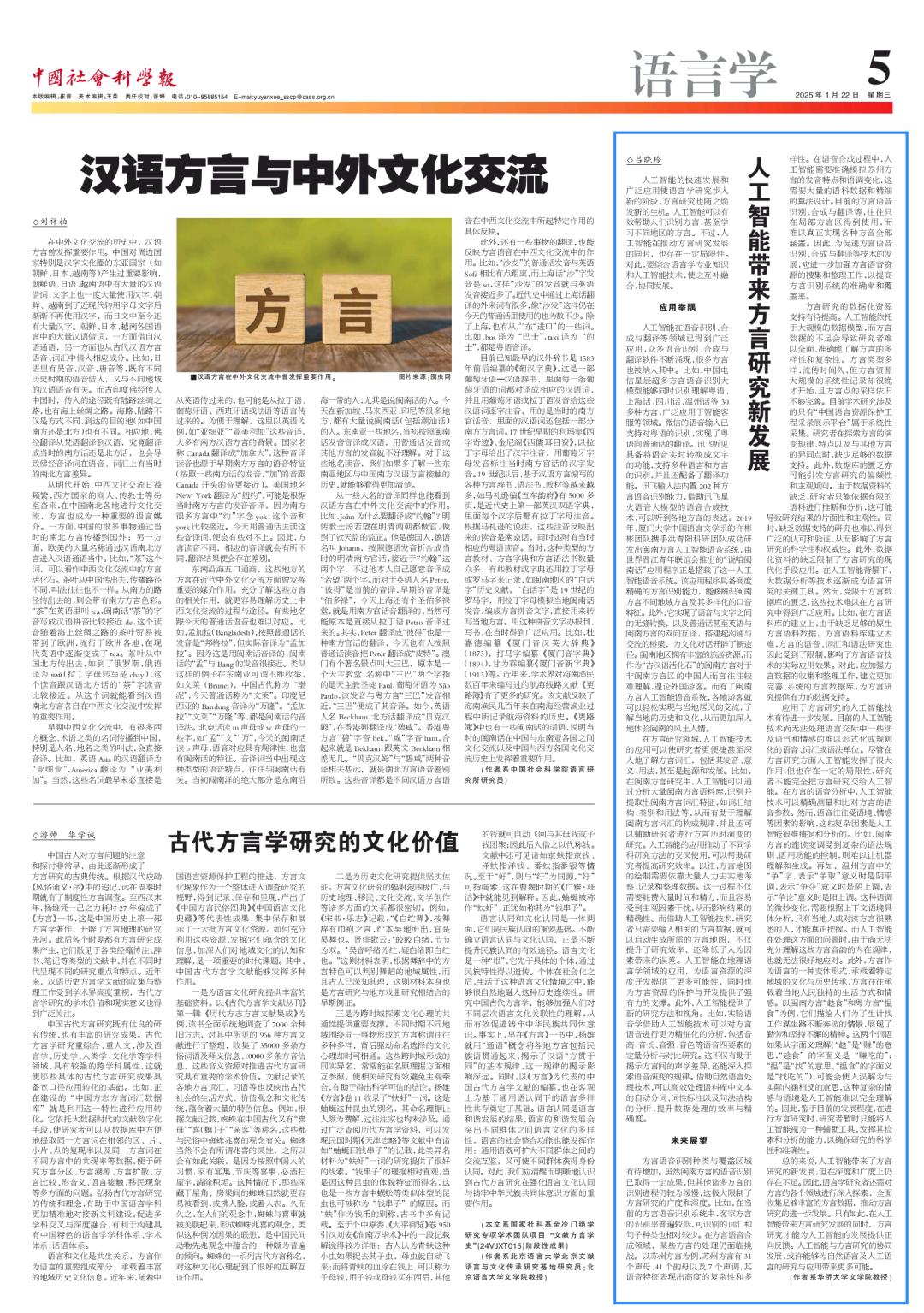 原标题:《人工智能带来方言研究新发展》
