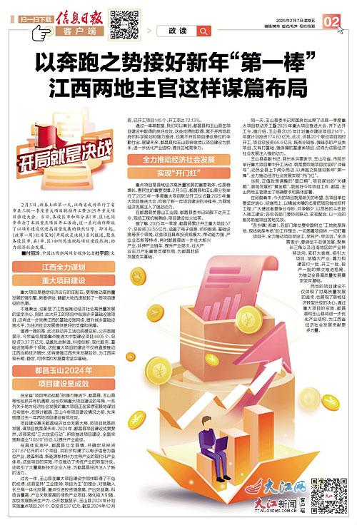 重大项目是稳定经济运行的压舱石,更是推动高质量发展的强引擎。新春伊始,赣鄱大地迅速掀起了一股项目建设的热潮。