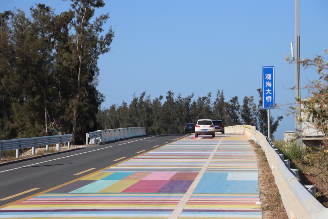 海岛7号公路“千寻之梦”旅游景观打造工程以“海边的千寻之梦,心中的治愈之旅”为创作理念,由“治愈系”彩虹路、观景台、“超治愈”短诗3个部分组成。在蓝天白云和大海的衬托下,行驶在7号公路上,多巴胺色彩治愈人心。