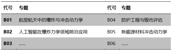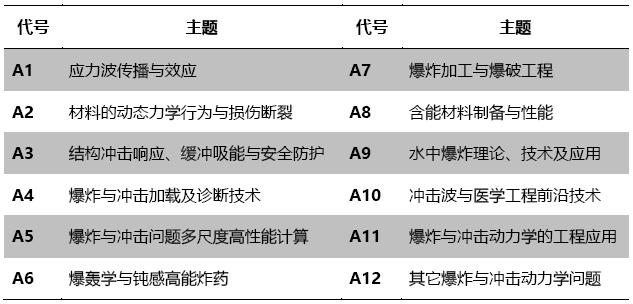 会议拟设置10个专题,研讨爆炸与冲击动力学前沿进展及其在国民经济发展中应用等相关问题。各专题公开征集负责人2人,负责该专题的组稿征稿、会议主持等事项,请有意愿担任“专题负责人”的专家、老师与会务组联系。各专题最低组稿要求须达到4个以上的单位、12篇以上的稿件。下表列出几个专题名称,供参考。具体专题名称,待征集后由“专题负责人”确定。专题征稿论文的详细摘要要求与主题征稿论文保持一致。