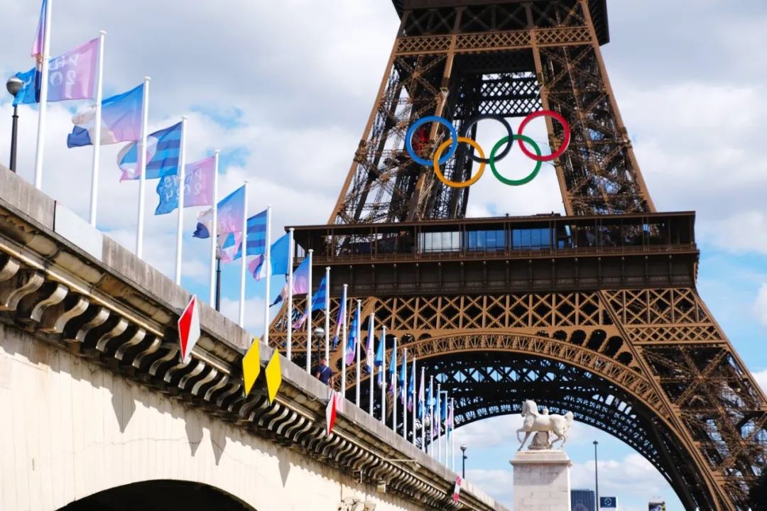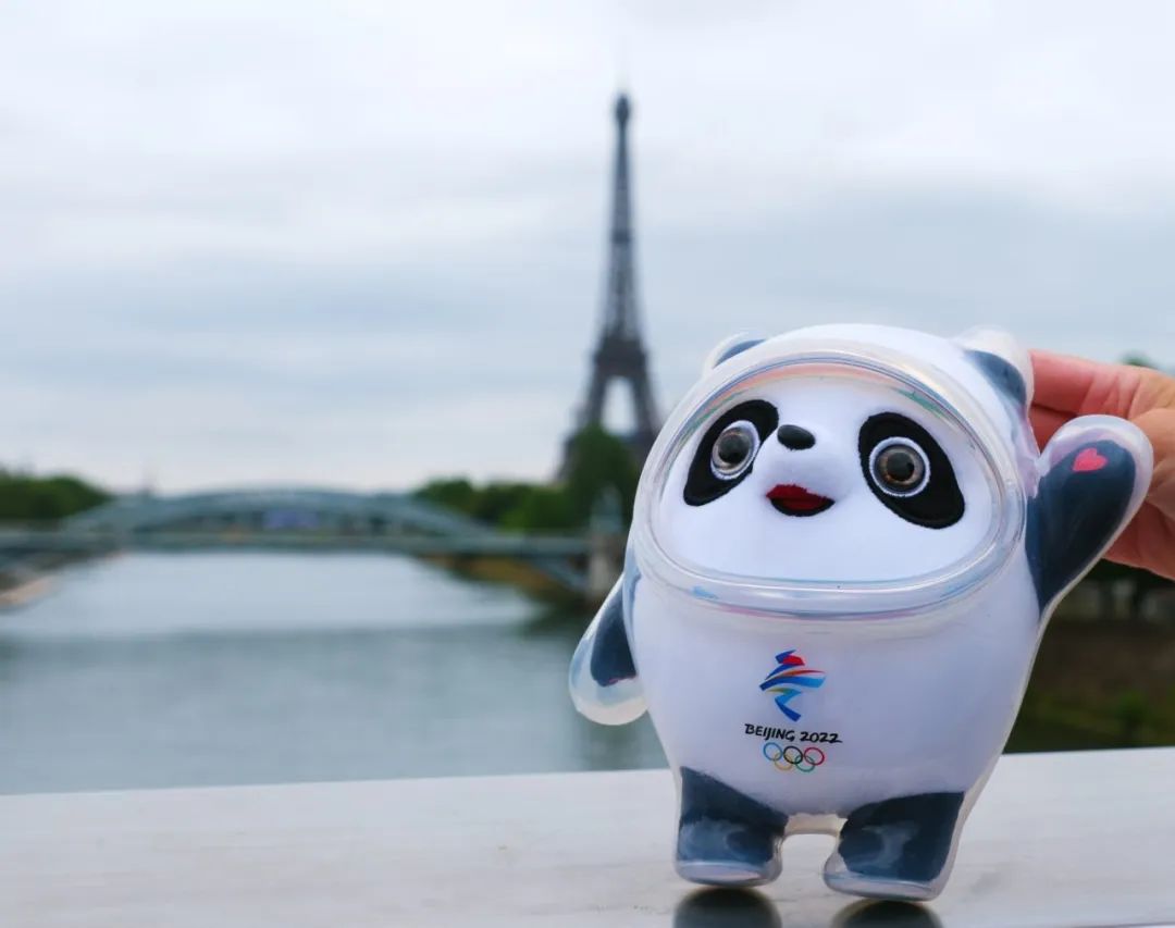 △北京冬奥会吉祥物冰墩墩与巴黎奥运会期间的埃菲尔铁塔