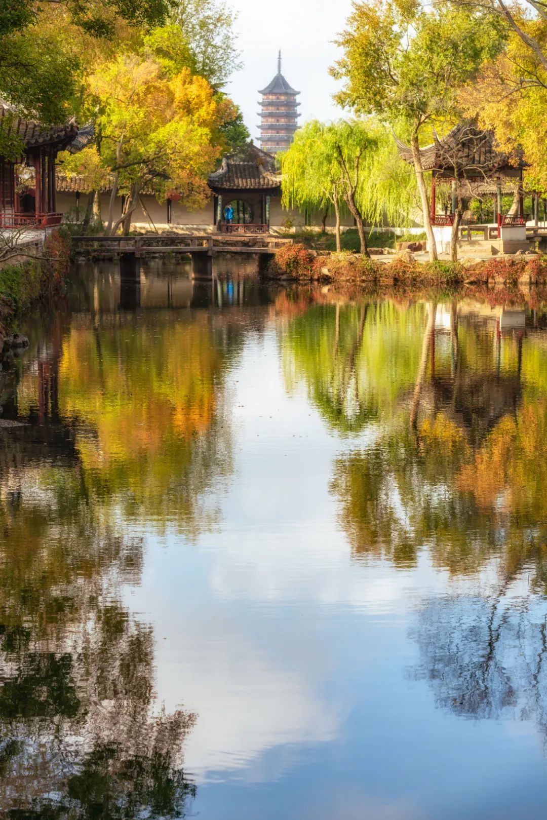 当她漫步苏州园林时