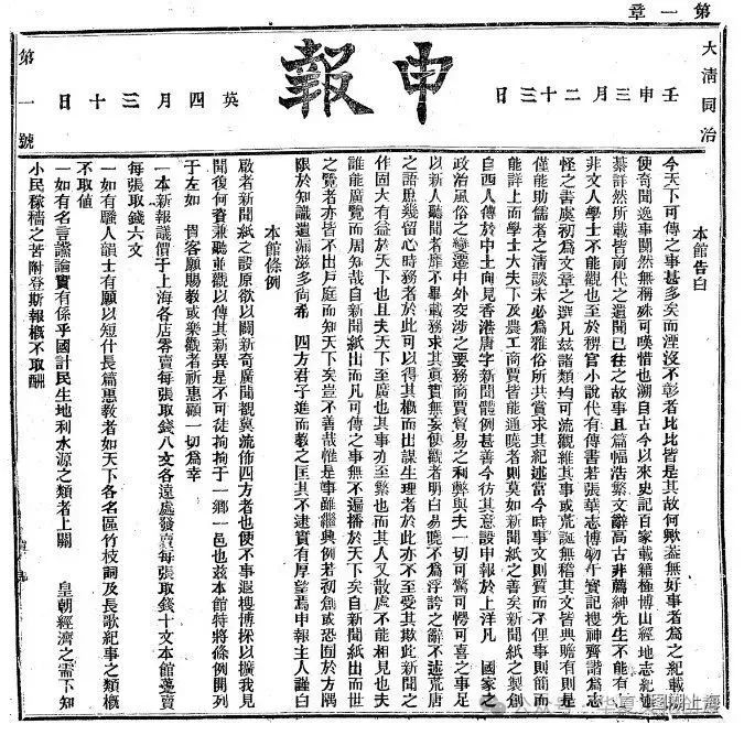 《申报》的创办者是英国商人安纳斯托美查,他在1860年来到上海。当时的租界已是华洋杂居,人口稠密,美查为申报的定位是:针对华人雅俗共赏的大众商业化报纸,要求《申报》注重刊登议论时政的论说文,新闻报道注重猎奇性和趣味性,内容编排和文字风格均讲究通俗性和可读性。《申报》创刊时就由评论、新闻、副刊、广告四大块组成,尤其是将评论放在报纸的头版,为当时上海中文日报的首创。