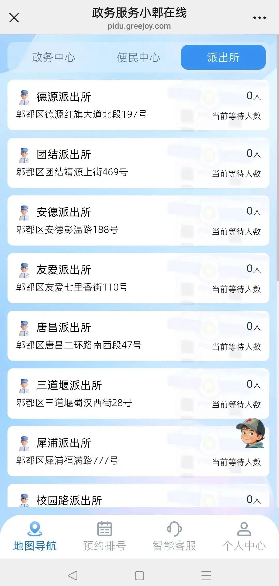 点击“小郫在线”-派出所