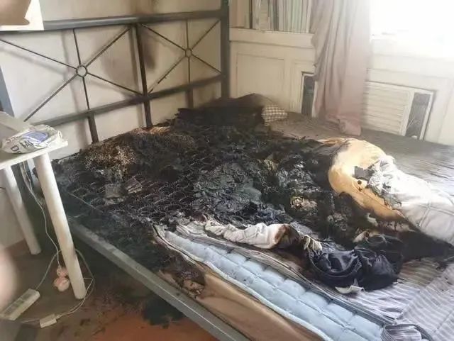2024年5月11日,北京市某小区一出租屋发生火灾,导致房间内的墙面被熏黑,床铺被烧毁。该起火灾是充电宝电池故障起火,引燃了床上的被褥等可燃物所致。