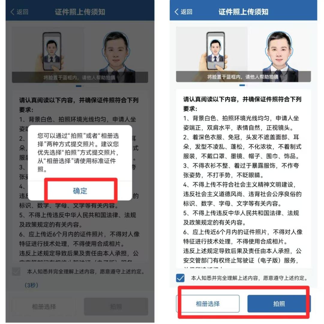 九江交警温馨提示:通过“拍照”或“相册选择”上传照片或已更换过照片的,申领人需6个月后方能替换照片。