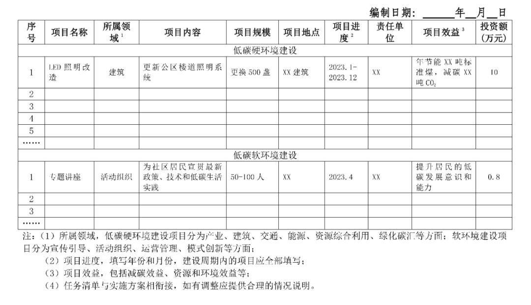 各在建低碳发展实践区(近零碳排放实践区)、低碳社区(近零碳排放社区)试点单位应按照实施方案与任务清单制定2025年度工作计划(附件3),并于2025年2月28日(周五)前将工作计划(word文件1份,加盖公章的pdf文件1份)发送至联系人邮箱。