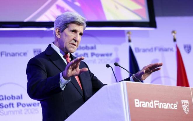 2月20日,前美国国务卿约翰·克里的在英国伦敦全球软实力峰会上发表演讲。图片来源 视觉中国