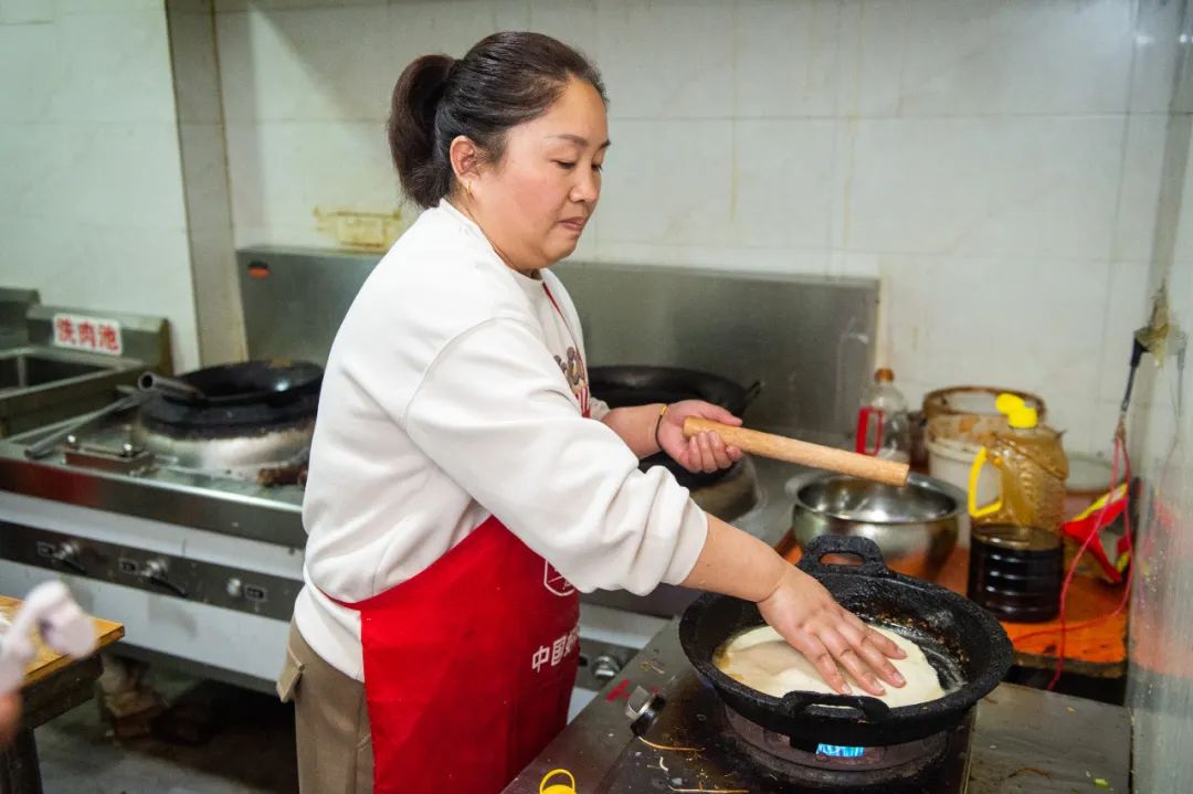 焦香微辣的蛋碎裹进热烙馍,蛋骨酥脆与馍皮柔韧形成奇妙反差,当地也有了“毛蛋卷馍,越嚼越香”这个说法。