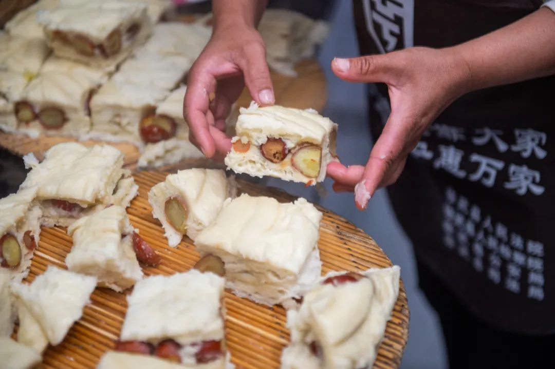 枣馍的制作工艺很复杂,老面需经三次醒发,每次揉搓三十遍以上,才能让馒头层次分明、麦香浓郁。