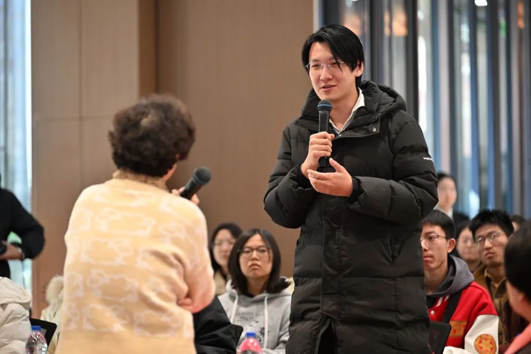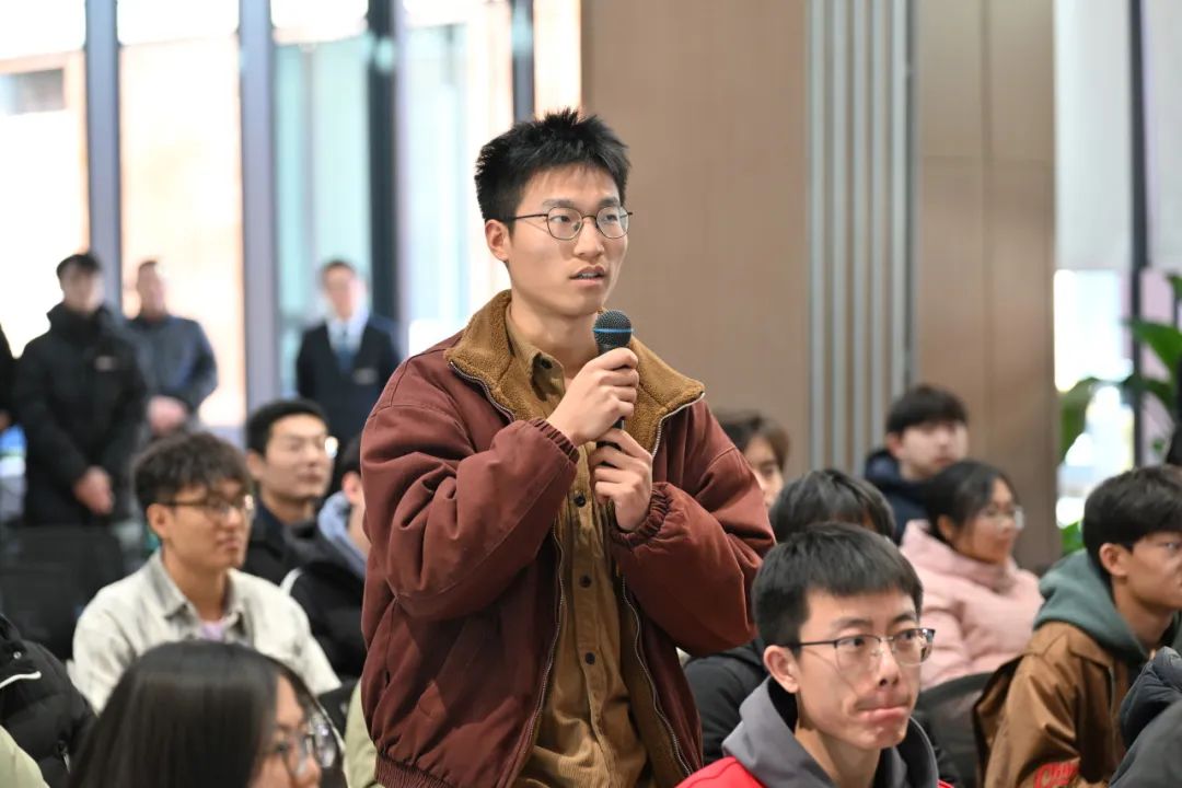 讲座不仅是一次前辈历程的回望,更是一次生动的科学家精神传承。提问环节,来自集成电路学院的2024级硕士生李俊杰率先发问:“作为一位经验丰富的前辈,您对即将步入科研领域以及正在从事科研工作的后辈们有何忠告?”王柏懿耐心地回答道:“首先,我希望年轻一代能够树立远大的志向;其次,要保持严谨的科研态度;最后,要打好扎实的基础。”