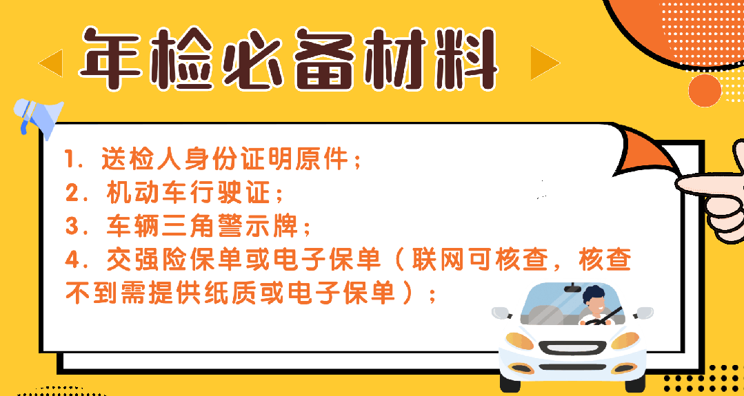2.检车前,提前给车辆做全面体检,重点检查灯光、刹车、轮胎这些关键部件。