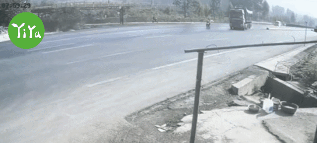▲货车超载900%突然爆胎,一声巨响,两人受伤