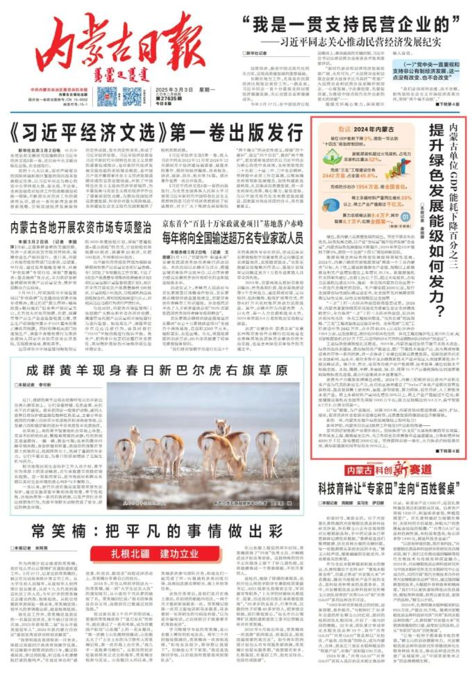 以“绿”赋能,为产业提质。回首2024年,内蒙古协同推进降碳、减污、扩绿、增长,促进经济社会发展全面绿色转型,高质量发展的绿韵底色不断厚植。