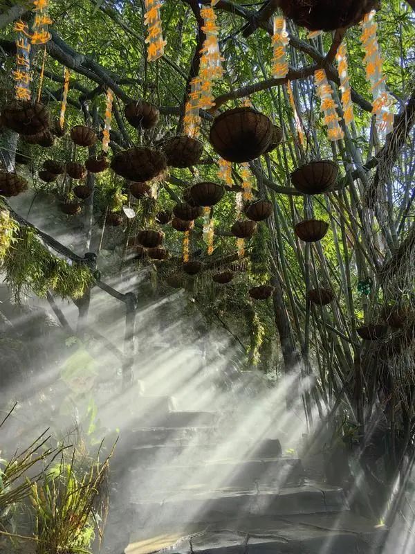 春天,林间的石斛在清晨的丁达尔效应下生机勃勃又有些神秘;