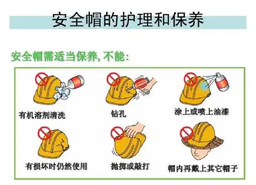 保持整洁:平时使用安全帽时应保持整洁,不能接触火源,不要任意涂刷油漆,不准当凳子坐,防止丢失或损坏。