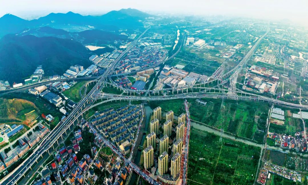 >>浙江省杭州市高架桥交通路况航拍 视觉中国供图