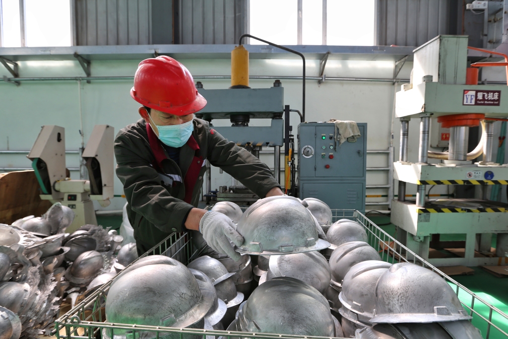 陕西省鸿泰元和镁业有限公司生产的镁合金安全帽 吕晓慧 摄