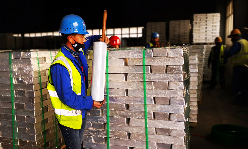府谷县泰达煤化有限责任公司车间的工人正在包装金属镁 刘贺伟 摄