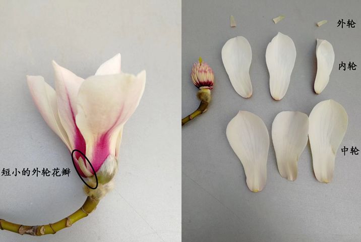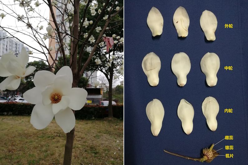 (左)白玉兰(右)白玉兰的三轮花瓣