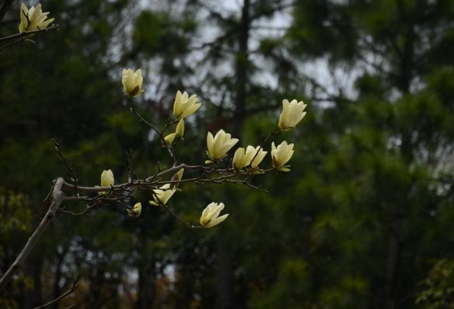 还有一种常见类型是白玉兰的园艺品种,飞黄玉兰。比紫玉兰花期更晚,就像颗彩蛋,在春天的尾巴上悄然绽放。黄绿色的花瓣在中国土著玉兰中也是绝无仅有。