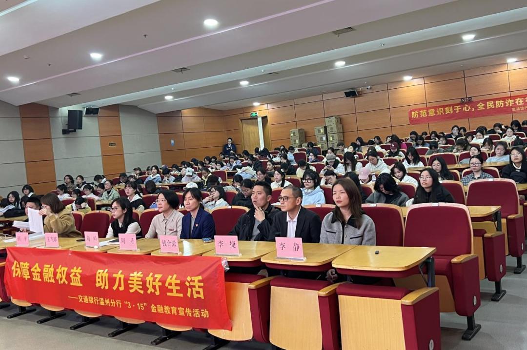为了提升大学生的金融安全意识,保护其合法权益,温州大学妇联携手交通银行温州分行成功举办“保障金融权益 助力美好生活”“3·15”金融反诈教育活动。本次活动由温州大学妇女联合会、安全保卫部与交通银行温州分行联合主办,法学院、教育学院、建工学院、电气电子学院妇联承办,全校300余名师生积极参与。