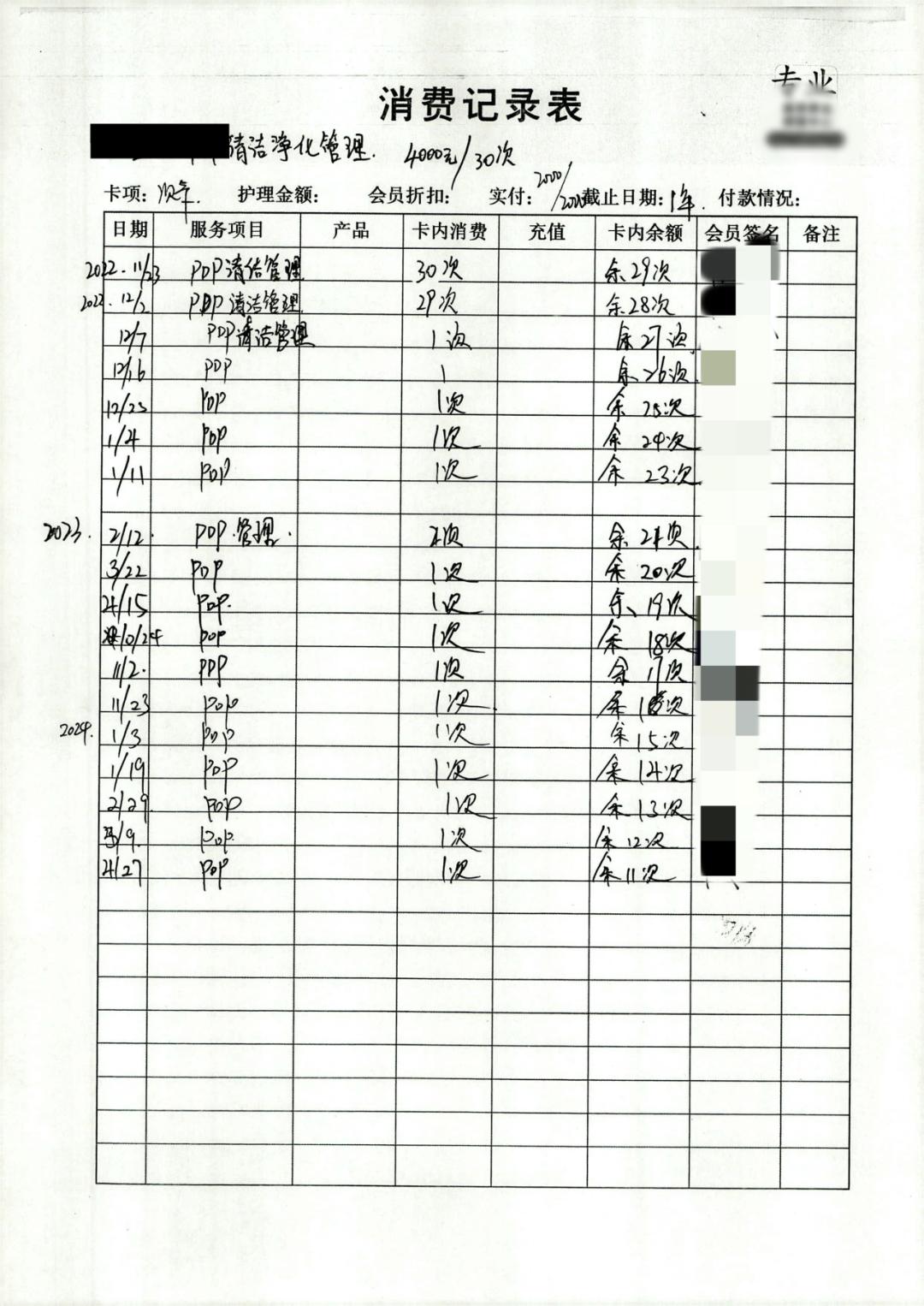 2022年11月23日,蒋女士在某美容服务部办理美容卡并充值4000元,包含30次美容服务,使用无时间限制。截至2024年4月底,蒋女士共计消费19次。