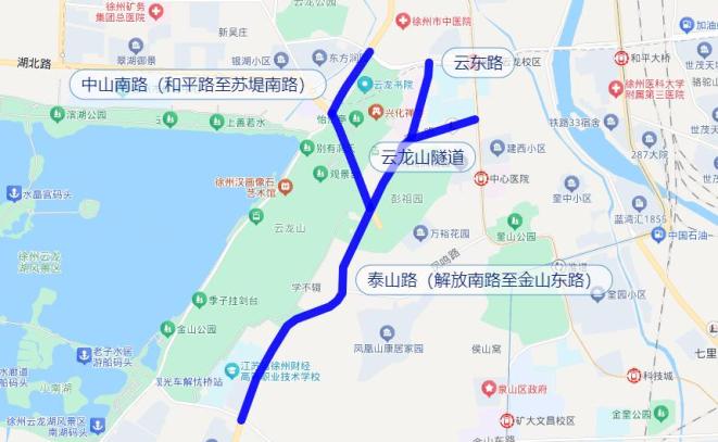 二、云东路(和平路至泰山路)、中山南路(和平路至苏堤南路)、泰山路(解放南路至金山东路)、云龙山隧道等,根据道路交通情况,现场确定交通限制措施。
