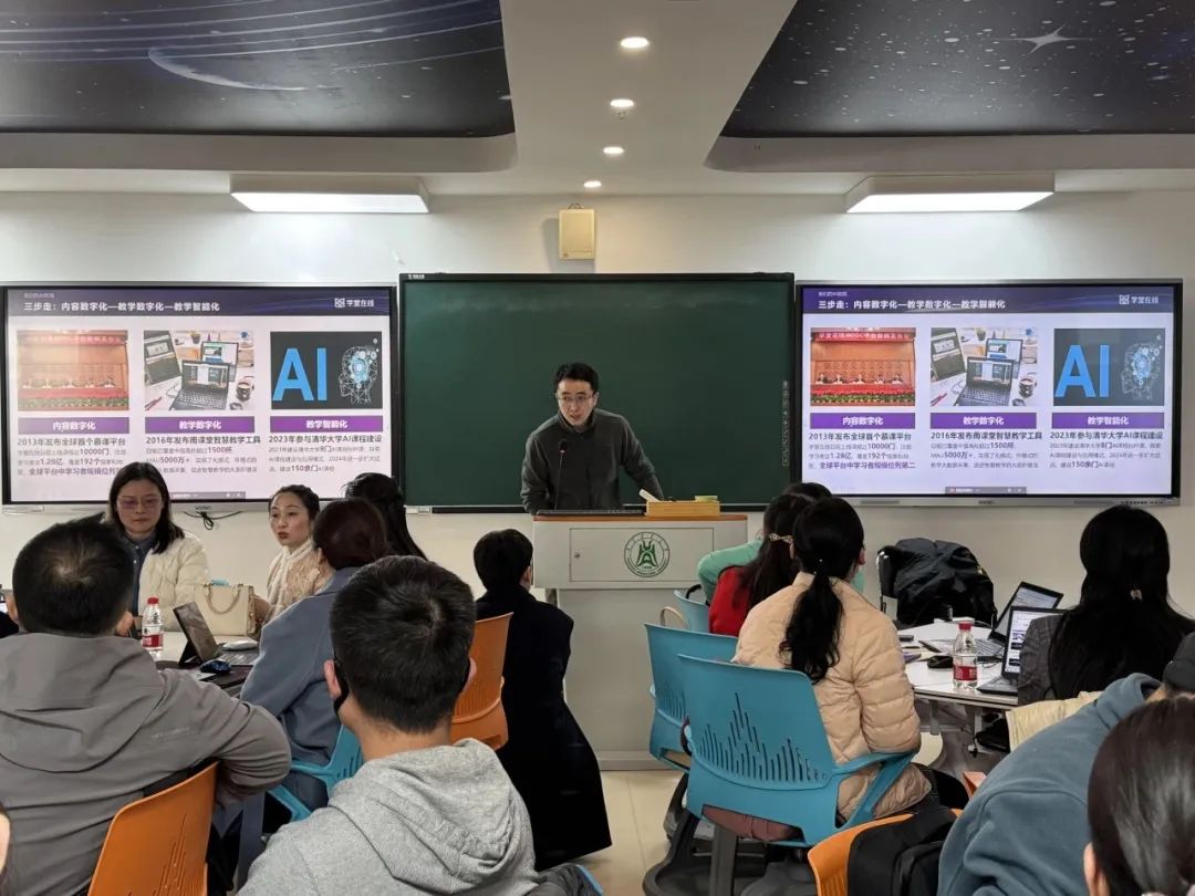 清华大学学堂在线培训师刘鹏带来“如何利用雨课堂AI教学平台助力智慧课程建设”的培训活动(本科生院供图)