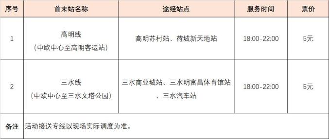 开设2条活动接送专线,加强终点站公共交通疏运服务,专线服务时间为18:00-22:00。