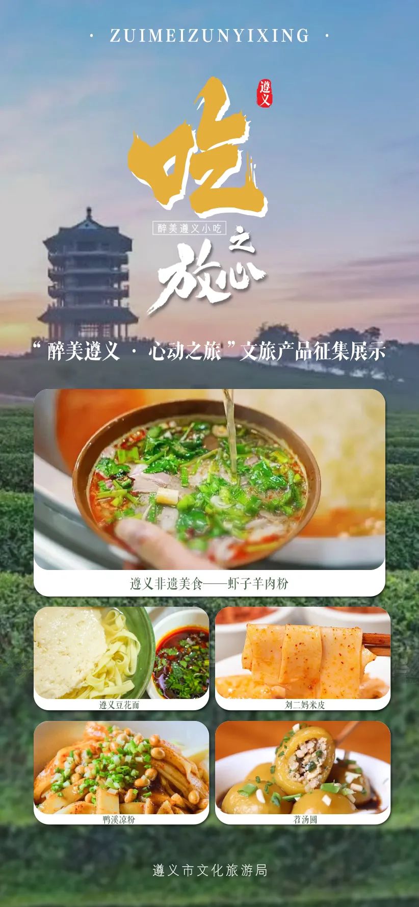 每个城市都有专属味道,令人唇齿留香,难以忘怀。遵义自然也不例外,美食可谓数不胜数。快收藏起来这份“最美九心”文旅产品图鉴,开启你的美食之旅!