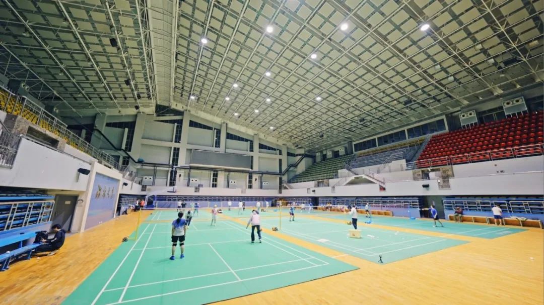 体育馆内设有羽毛球馆1个(8片)、体质测试房1个、形体房1个、健身房1个、乒乓球房1个(18台)、乒乓球馆1个(6台)、标准篮球场1片、排球馆1个、武术馆1个