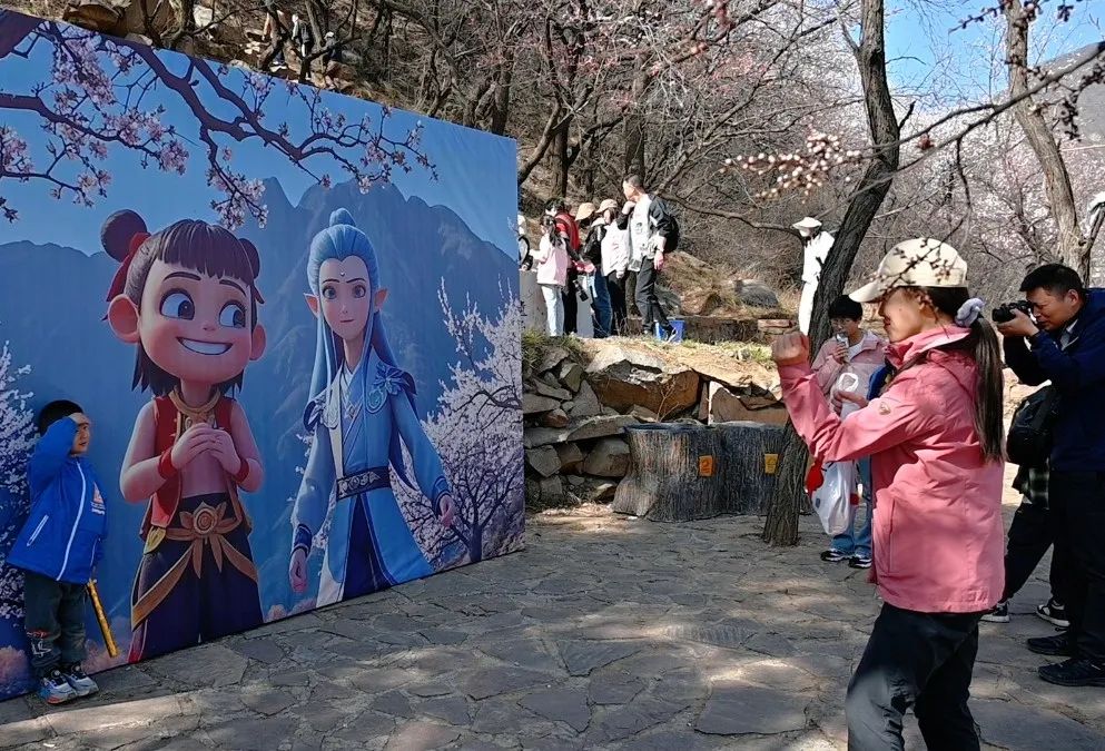 在这片烂漫的杏林中,有非遗漂漆扇DIY等你来体验,还可以和“哪吒”合影,体验感瞬间拉满。