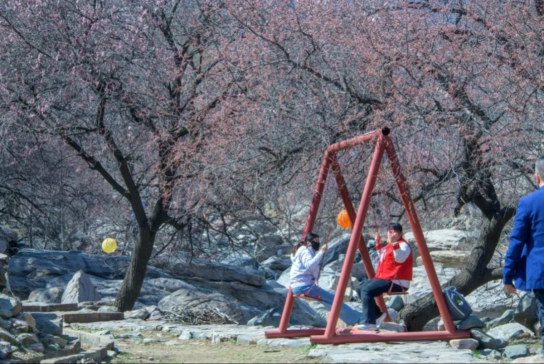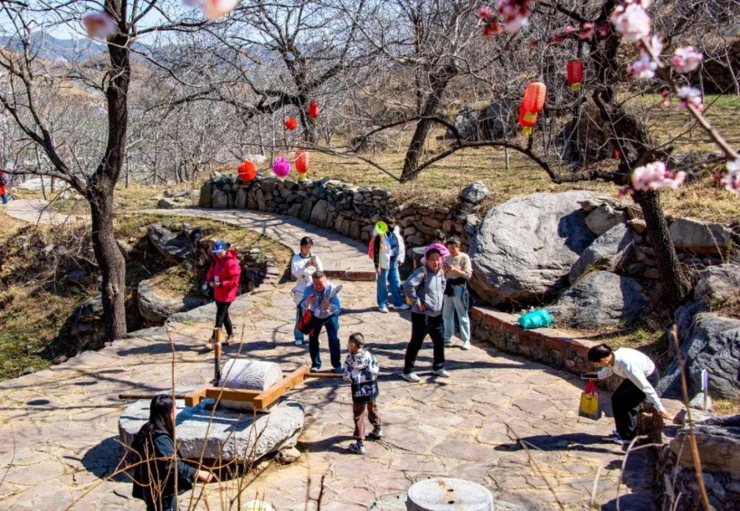 春日杏林中,不只有烂漫花海,更藏着趣味天地。亲手推碾子、拉石磨,让游客沉浸式感受当地民俗及农事的质朴;还可以挑战象棋残局,与好友一较高下,畅享春日好时光。