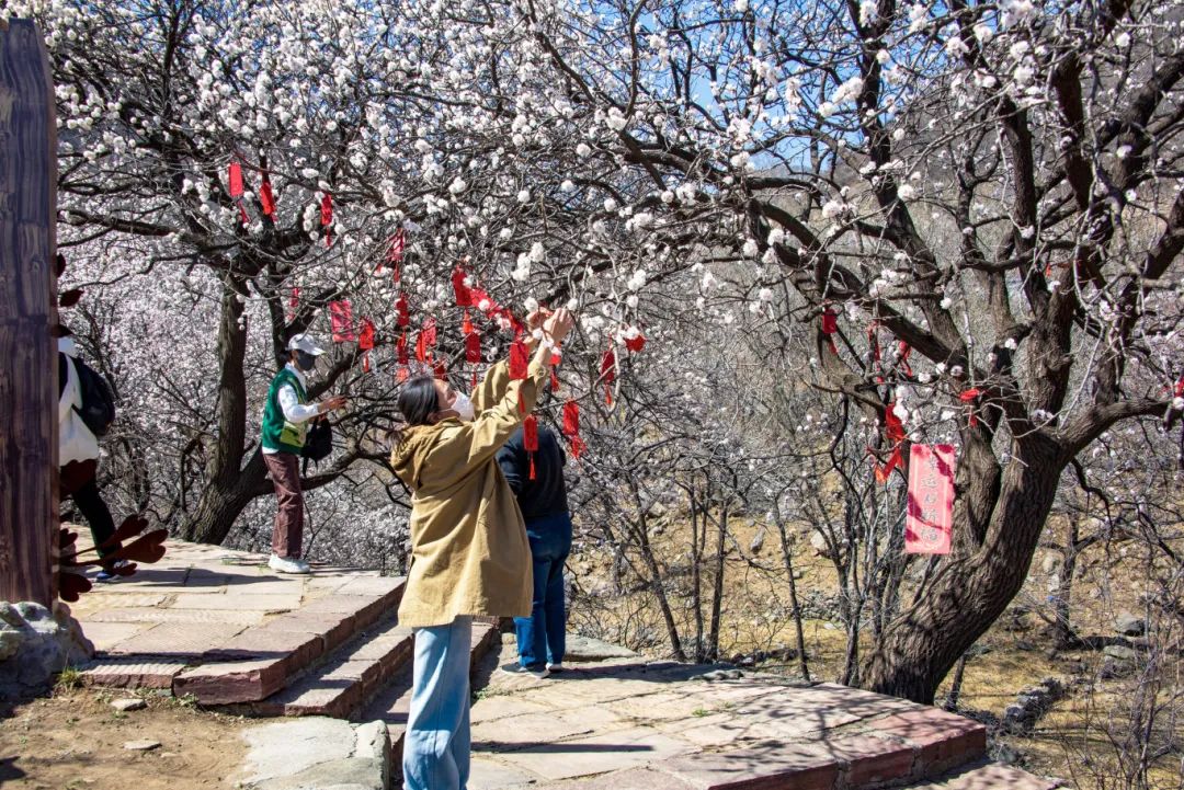 走进杏花烂漫处,邂逅许愿树。这里有祈福卡等您选购,写下愿望挂上枝头,在这片花的海洋留下美好祈愿。愿岁岁欢愉,万事胜意。