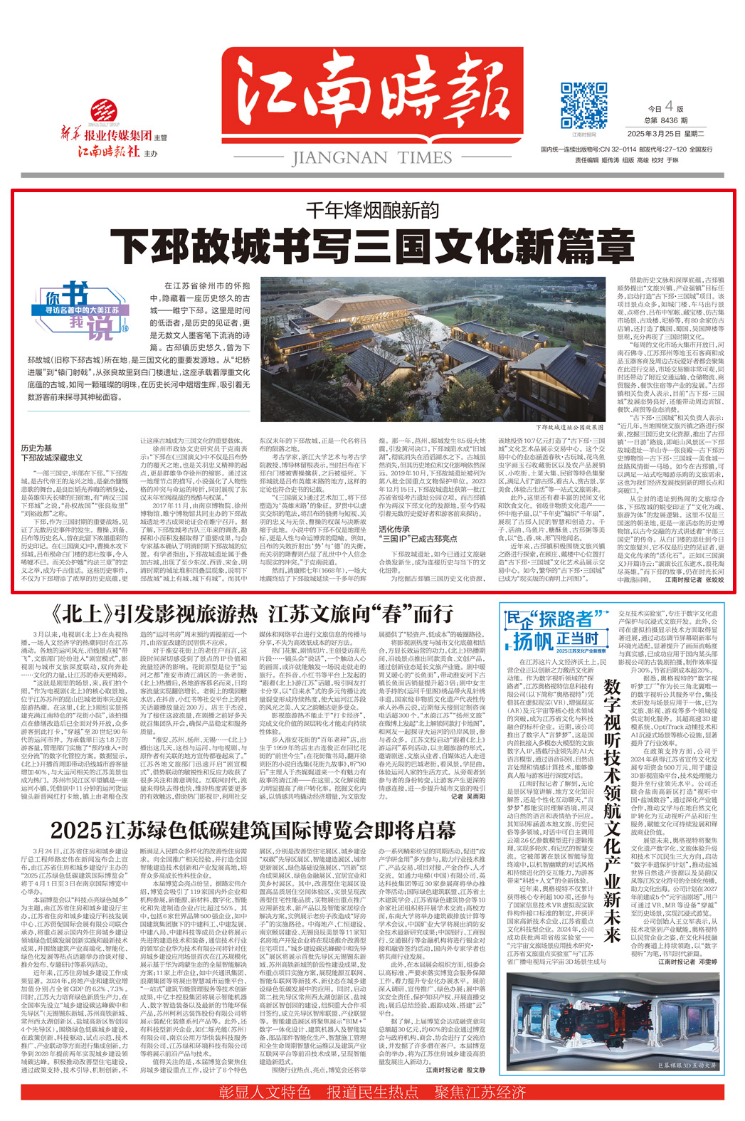 “古下邳·三国城”相关负责人表示:“近几年,当地围绕文旅兴镇之路进行探索,挖掘三国历史文化资源,推出了古邳镇‘一日游’路线,即岠山风景区—下邳故城遗址—羊山寺—张良殿—古下邳历史博物馆—古下邳·三国城—美食城—丝路风情街—马场。如今在古邳镇,可以满足一站式吃喝游乐购的文旅需求,这也为我们经济发展找到新的增长点和突破口。”