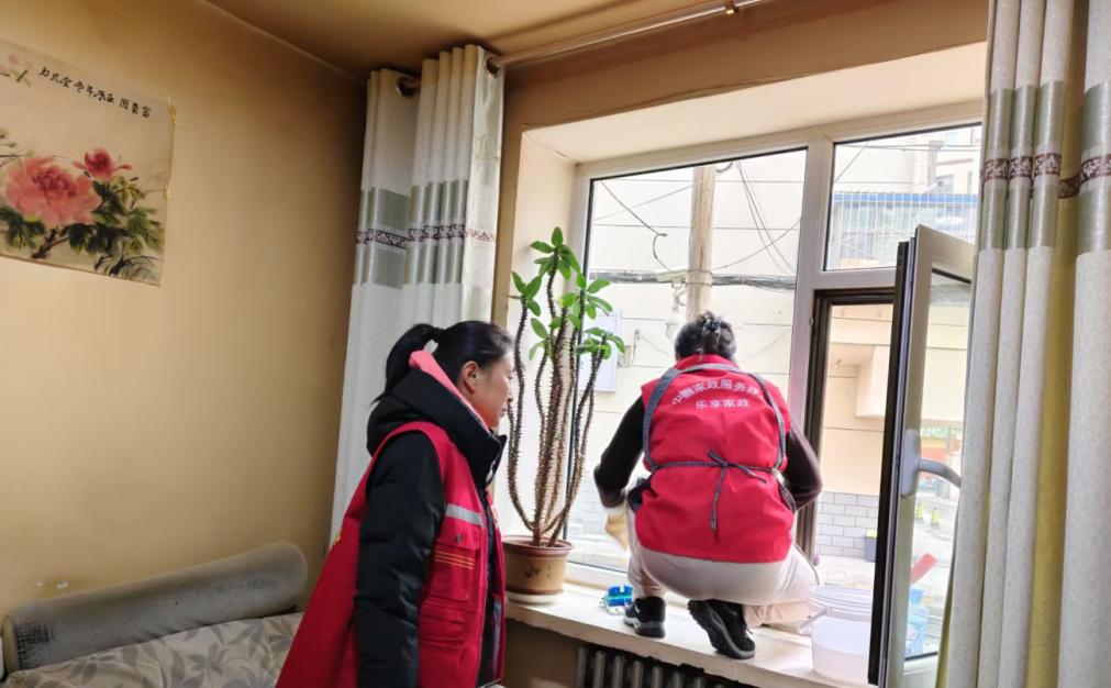 庆阳市“服务驿站”开展“家务全能干”一站式家政服务,为居民提供家庭保洁、健康监测等贴心服务。
