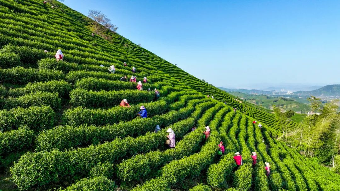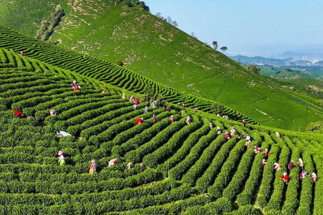 俯瞰茶山,一丛丛茶树宛如层叠碧波,采茶工人腰挎竹篓、指尖翻飞,按照一芽一叶的标准采摘今春第一捧嫩芽。今春天气晴好,阳光充足,雨量充沛,为白叶1号茶树营养物质积累和茶芽萌发提供了利好条件,预计茶叶品质也会更好。目前,全县30%的茶园进入采摘期,随着气温稳定上升,24.32万亩茶园即将全面开采。