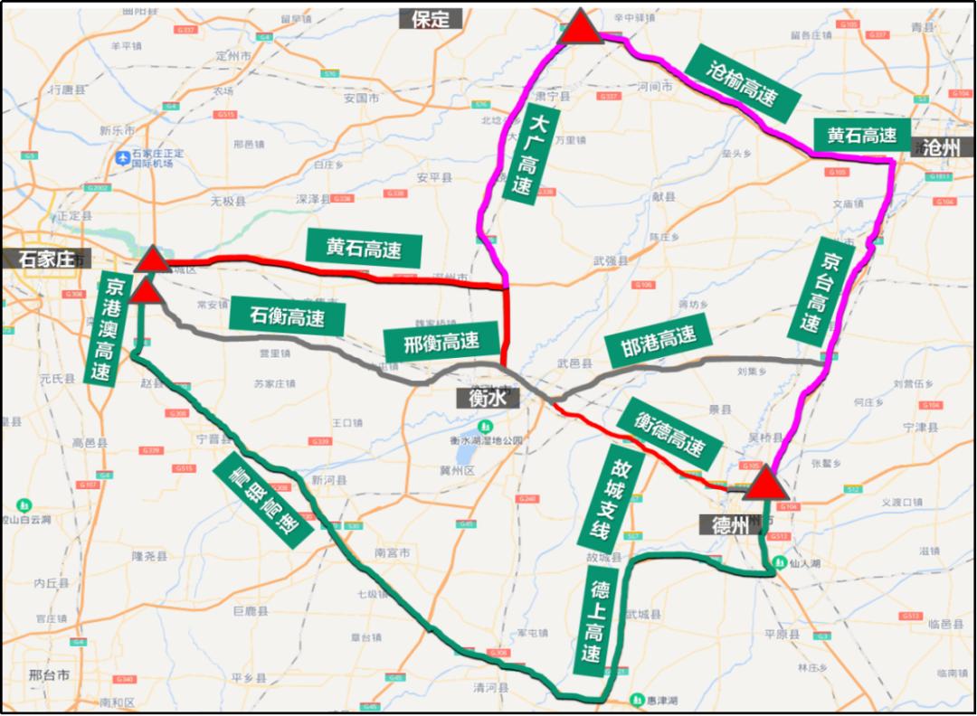 2. 从石家庄去往德州方向的车辆绕行路线:
