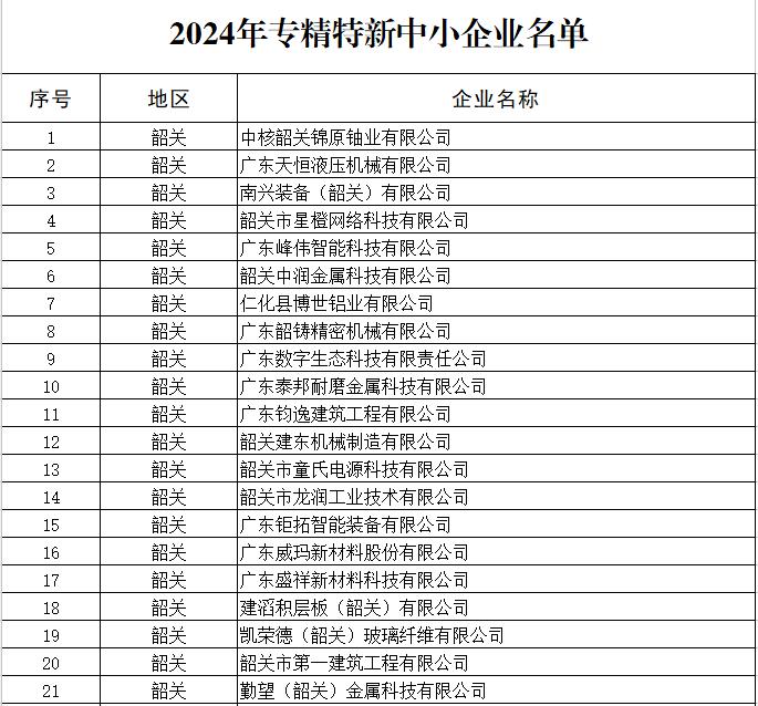 原标题:《喜讯!省级专精特新企业,韶关+21》