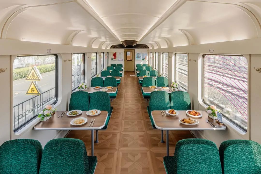 这组旅游列车是由绿皮车改造而成,按照既定线路运行,游客可以随机上下车。游客乘客都可以坐,旅游功能和交通功能同时兼备。列车内外做了较大的硬件软件方面的改造提升。硬件方面,既保留了绿皮车的原本属性,对车体、座椅、卫生间等进行了焕新改造提升,可以说是“怀旧但不陈旧”的绿皮车PLUS版。