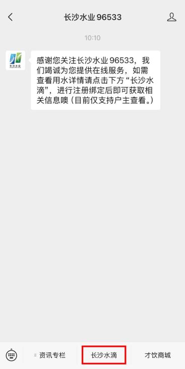 1. 关注“cs96533”长沙水业微信平台;