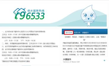 点击此处进入“长沙水业集团”官网,点击“长沙水业集团”官网首页右侧“停水信息”按钮,即可了解最新官方停水消息。